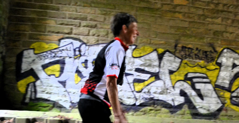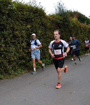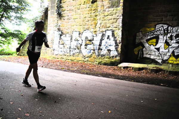 Einem Marathoni nicht genug, ließ es sich Oli nicht nehmen, kurzfristig den Tusem Marathon noch zu melden und wie die Jahre zuvor dort zu starten, wenn auch die Saison dieses Jahr schon sehr ausgefüllt und ausgereizt war. Sicher die Ultradistanz auf Hawai der Frauen angeschaut und das bittere „Sterben“ mit angesehen, sollte es Oli nicht viel besser ergehen, lief die erste Hälfte noch glatt und fein und mit einem Lächeln auf der Strecke, wurde der zweite Part zäh und man sah ihm das Leiden an, jetzt nur noch durch, Zeit mehr oder weniger egal, doch unter 3 h sollte es gelingen, was dann auch realisiert wurde. Sein Motto auf der 2. Runde lautete : JEMAND DER KÄMPFT KANN VERLIEREN, JEMAND,