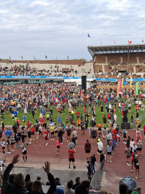 2,5h Anfahrt, Parkplatz reserviert, 20 Minuten Fußmarsch und angekommen am Olympiastadion in Amsterdam. Menschenmengen, die größtenteils in unzähligen Toilettenschlangen standen und ja, Daniel musste sich eine dieser Schlangen zunächst einreihen. 10 Minuten einlaufen und dann geht der Kerl in aller Seelenruhe 10 Minuten vor dem Start ins Stadion...ganz gemütlich. Die Ruhe hätte ich auch gerne...Anmerkung der Redaktion: Im Gegensatz zum nun folgenden Teil, hat diese kurze Einleitung nicht Daniel, sondern vom auch in Amsterdam in einer Nebenrolle weilenden Olli verfasst.
